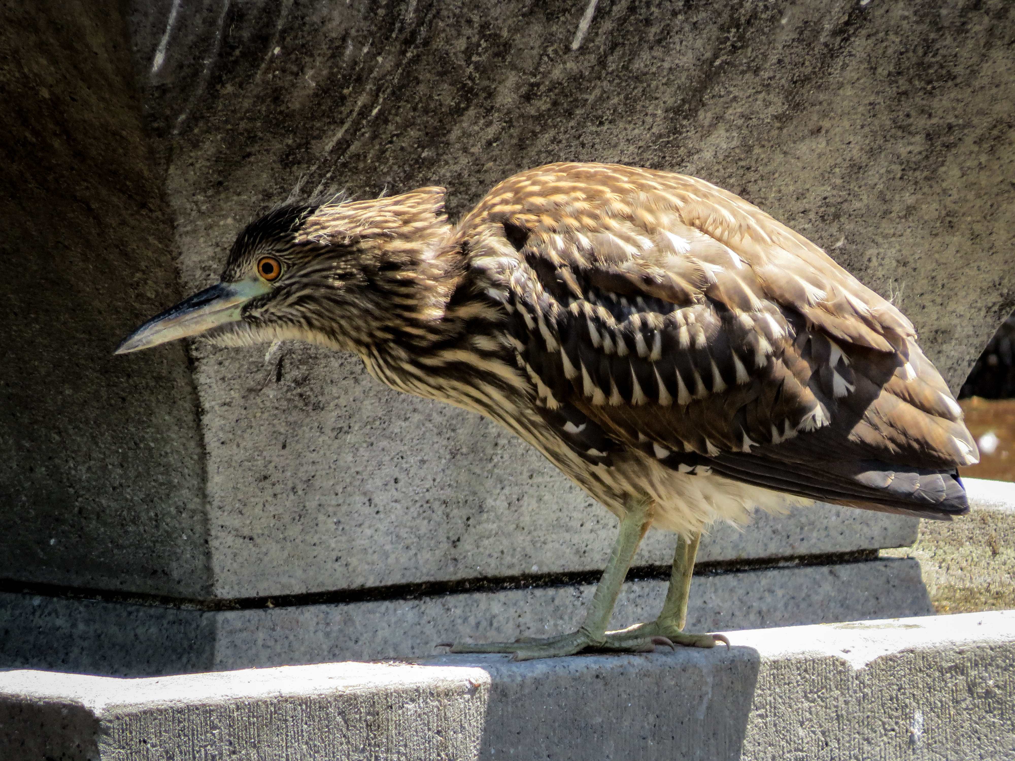Juvenile Black-crowned Night Heron – Oakland, California Juvenile Black-Crowned Night Heron poking around the fountain at Lake Merritt in Oakland, California.